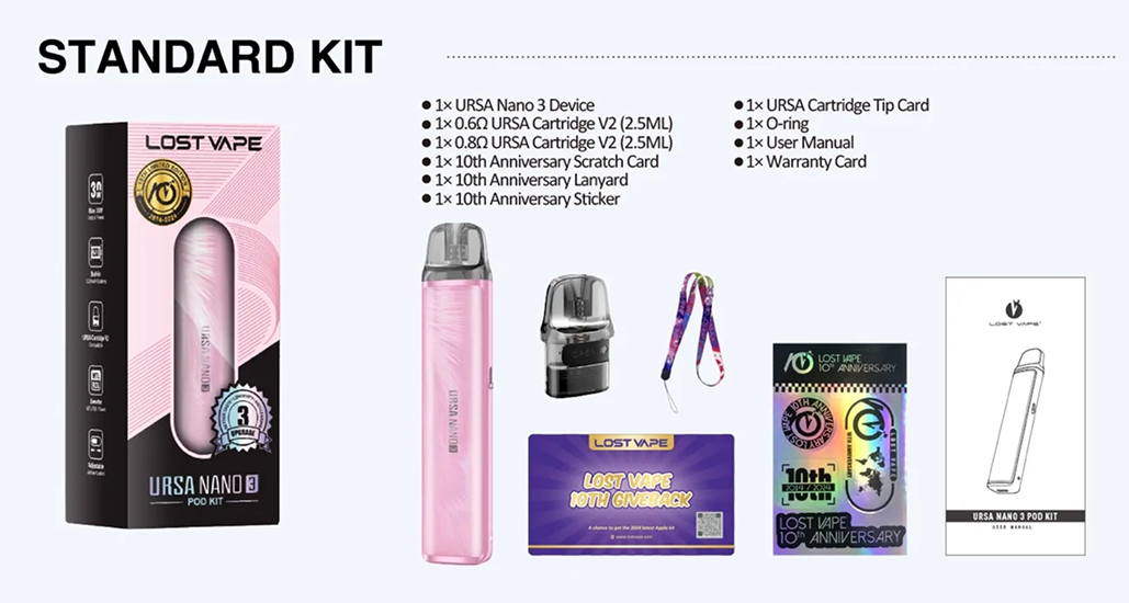 - 1 × Lost Vape Ursa Nano 3 Battery (1200 мА·ч)