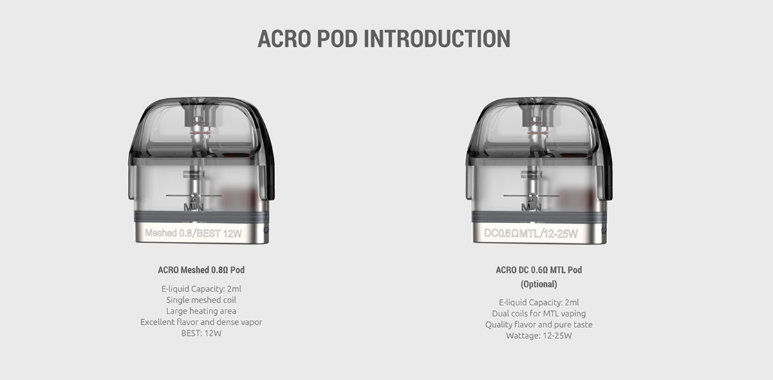 Особенности Smok Acro 25W 1000mAh Pod Kit: