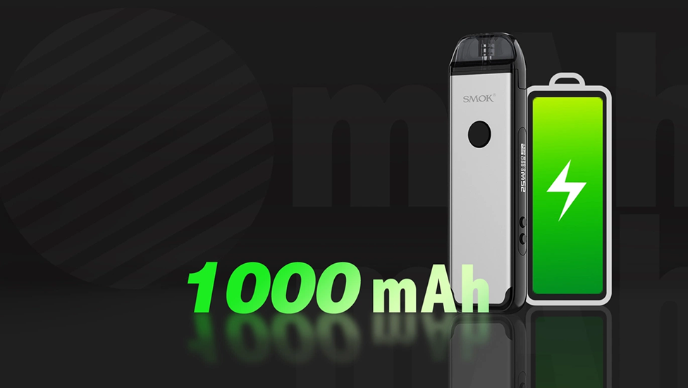 Этот pod питается от встроенного аккумулятора емкостью 1000 мАч, чего с запасом хватит на целый день даже при интенсивном парении. Чипсет позволяет работать в режиме вариватт с мощностью от 5 до 25 Вт. Вся необходимая информация о текущем состоянии девайса отображается на монохромном дисплее, а активация возможна как от затяжки, так и от кнопки.