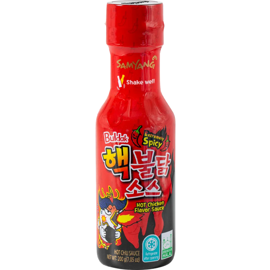 • Buldak Hot Chicken — класичний гострий соус із насиченим смаком обсмаженої курки, перцю чилі та спецій. Створює автентичний пекучий аромат, знайомий шанувальникам легендарної локшини Buldak.