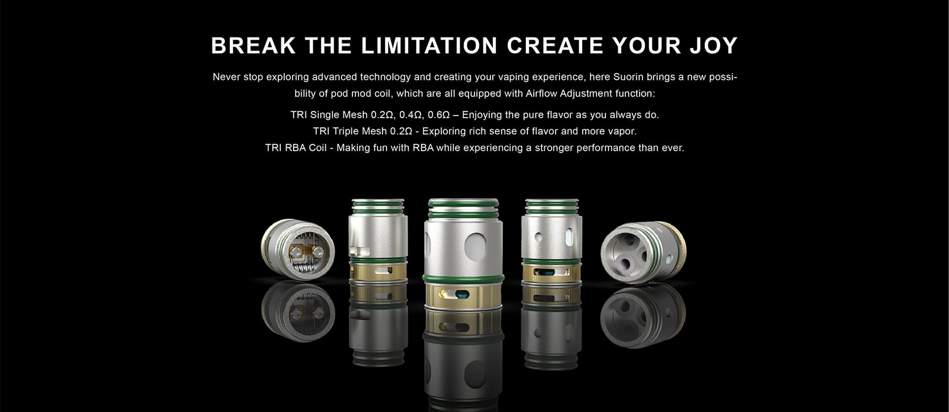 Дана обслуговувана база розроблена спеціально для потужних под-модів від Suorin, які працюють на платформі випарників серії TRI. Вона встановлюється в картридж замість заводського змінного випарника та підходить для таких моделей:
