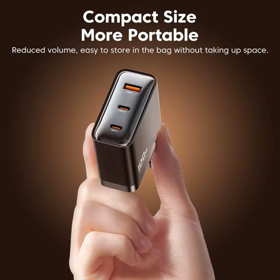 Toocki 3-Port GaN Fast Charger 100W - це універсальний адаптер від бренду Toocki, створений для швидкої та безпечної зарядки кількох пристроїв одночасно. Компактний формат поєднується з високою потужністю, що дозволяє використовувати його як основне рішення для живлення ноутбуків, смартфонів та інших гаджетів.