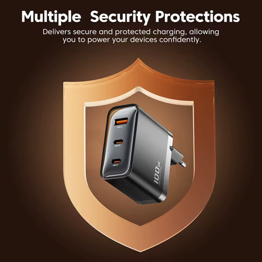 Зарядний пристрій оснащений комплексною системою захисту. Вбудований чіп контролює процес у реальному часі, запобігаючи ризикам перегріву, стрибків напруги або короткого замикання, щоб гарантувати повну безпеку для вашої дорогої техніки.