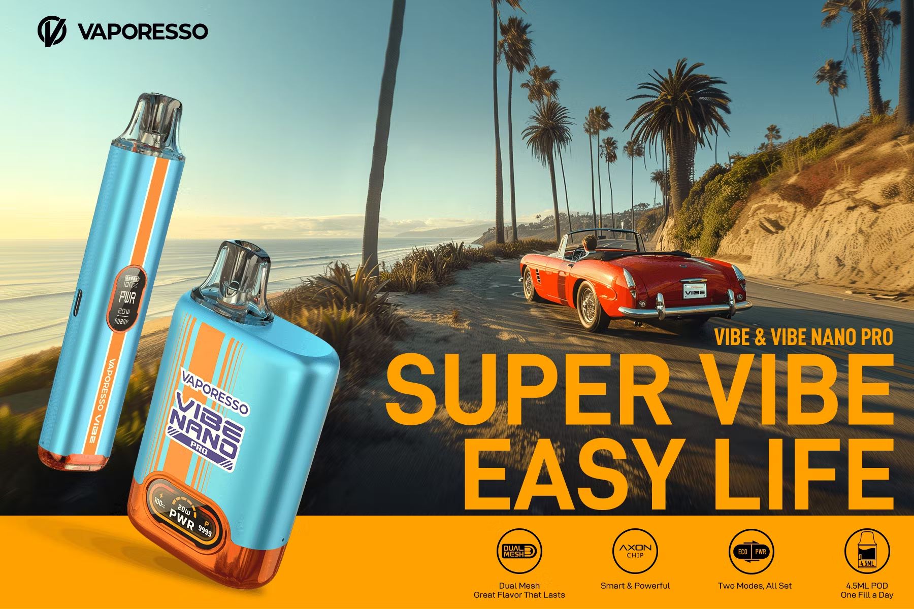 Пристрій створений для інтуїтивного та комфортного використання: він активується від затяжки, а всі ключові налаштування управляються одним зручним слайдером. Vaporesso Vibe не тільки простий в експлуатації, але й стильно виглядає – це сучасний та продуктивний гаджет, яким приємно користуватися щодня.